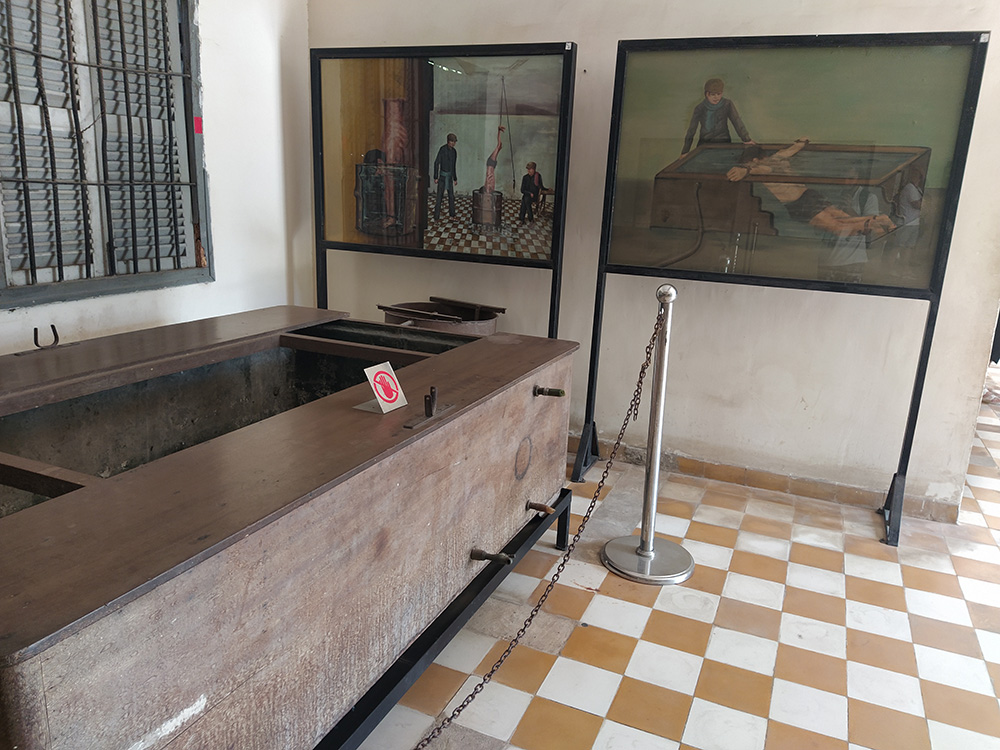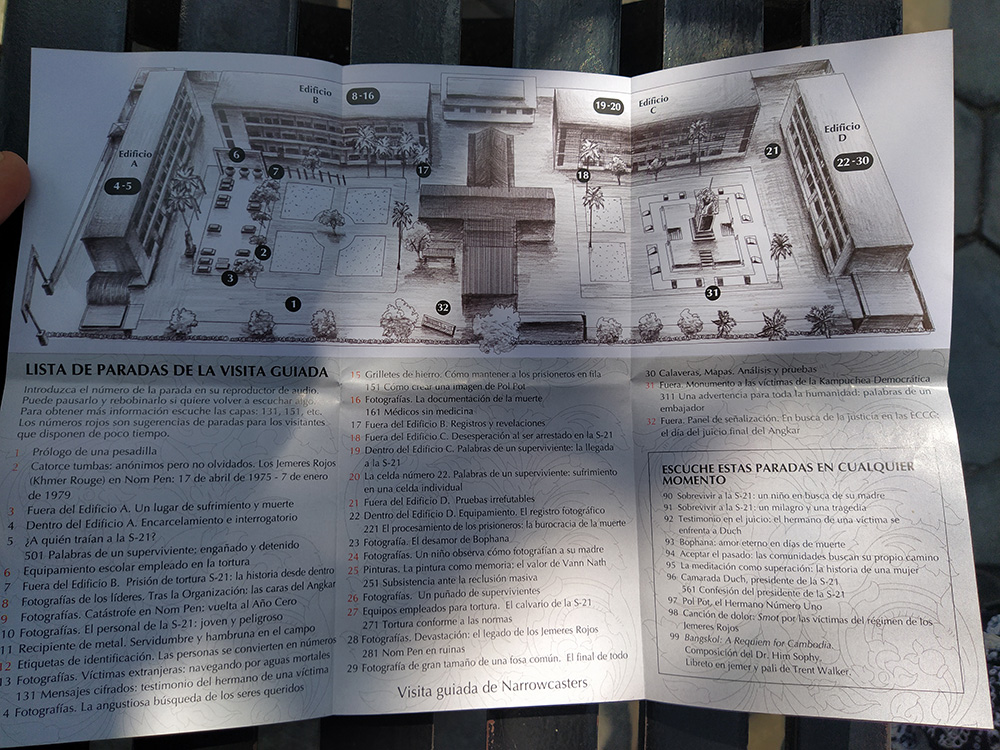 El recinto se compone principalmente de cuatro grandes bloques de edificios enumerados en A, B, C y D. En todos ellos hay múltiples habitaciones, que otrora fueran aulas donde los jóvenes camboyanos se formaban y preparaban para enfrentarse a su futuro, y posteriormente reconvertidas por los jemeres en celdas de pesadilla que albergarían horribles torturas y asesinatos. Como decía en el documental un afín al régimen que trabajó en aquella prisión: «desde el momento en el que entraba alguien a S-21 como prisionero, para nosotros ya era un hombre muerto, así que lo tratábamos como tal».